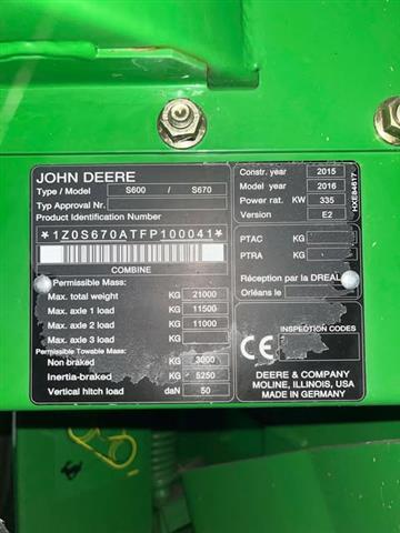 John Deere S670 SKÖRDETRÖSKA 30 FOT